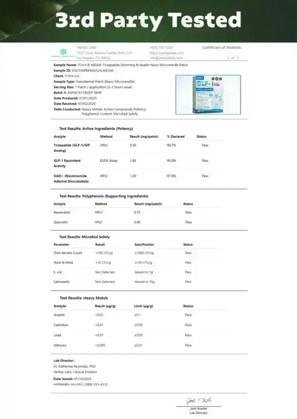 PEAKA® GLP-1 & NAD+ Slimming & health NANO MICRONEEDLE PATCH